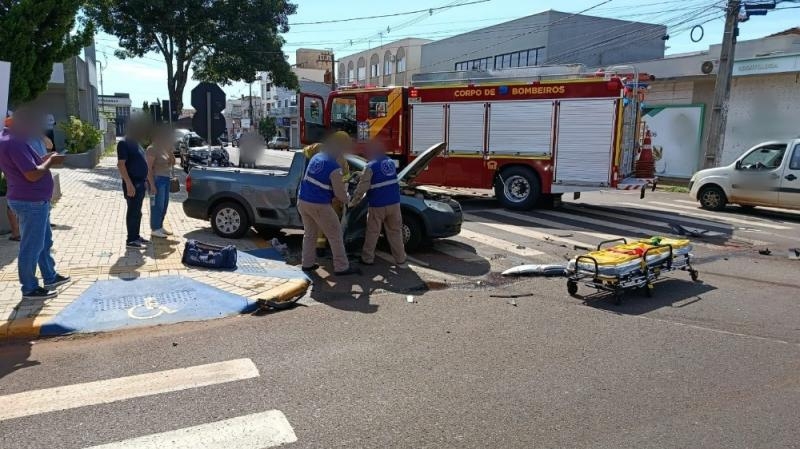 Uma colisão entre dois veículos provocou transtornos no Centro de Toledo na manhã desta sexta-feira (28), deixando duas pessoas feridas e exigindo a intervenção do Corpo de Bombeiros para socorrer uma passageira presa nas ferragens.