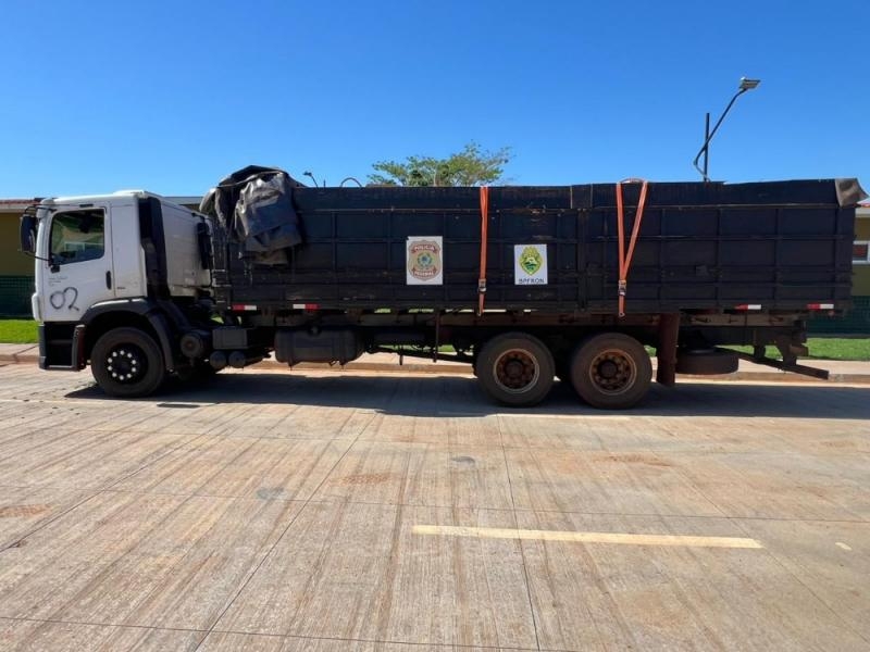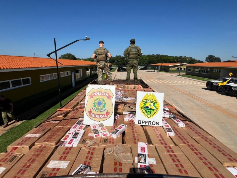 Na madrugada de sábado (22), Policiais Federais do NEPOM/PF e Policiais Militares do BPFRON apreenderam um caminhão carregado com cigarros em Guaíra.