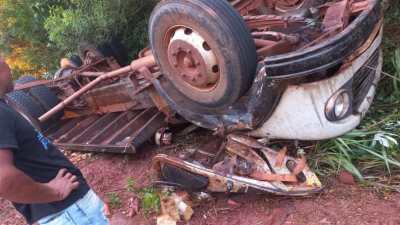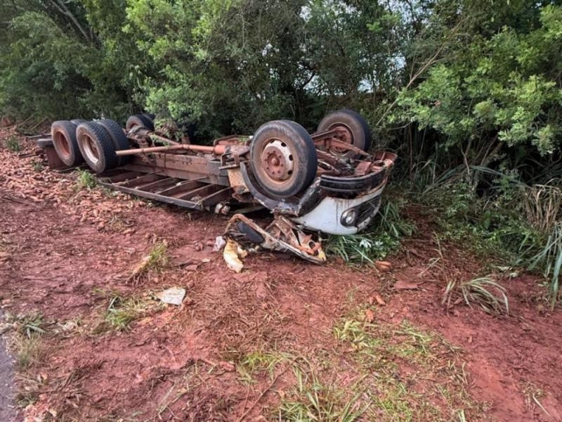 Com a pista molhada, o veículo acabou saindo da rodovia. Ao tentar retornar para a pista, o motorista perdeu o controle da direção e o caminhão acabou tombando do outro lado da margem da rodovia, ficando com as quatro rodas para cima. A cabine ficou praticamente destruída com a força do impacto.