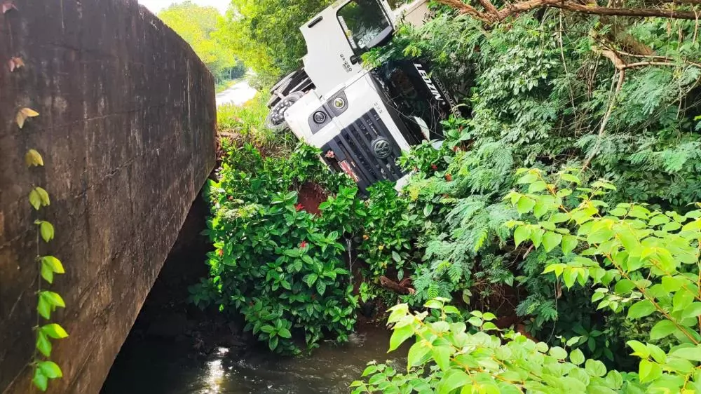 Para evitar bater na traseira da colheitadeira, o motorista desviou rapidamente para a pista contrária. Ao tentar retornar para sua faixa logo à frente da máquina, perdeu o controle do caminhão, que saiu da pista, atingiu algumas árvores e parou na barranca do rio, ficando a poucos metros de cair dentro da Sanga Xerê.