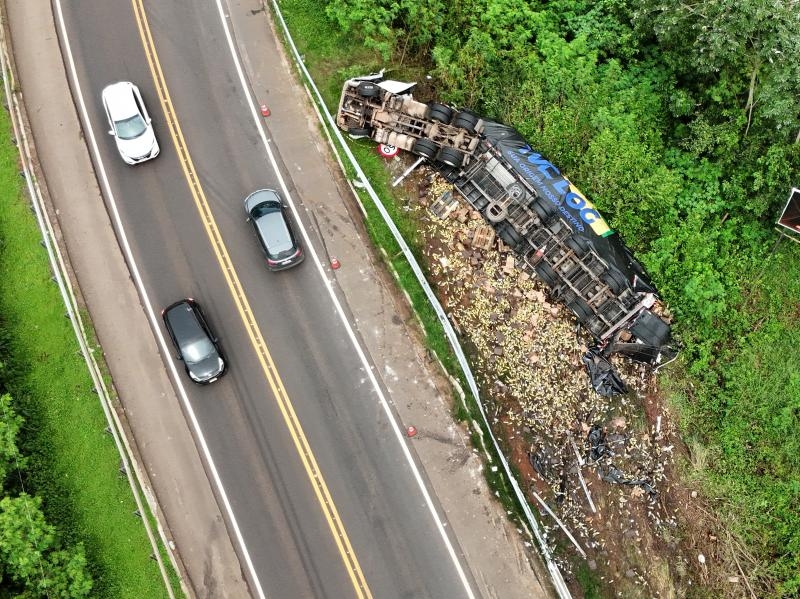 Conforme as informações, a vítima conduzia uma carreta Volvo FH carregada com óleo de soja pela BR-163, em direção ao Paraná, quando acabou tombando o veículo na curva de acesso à Ponte.