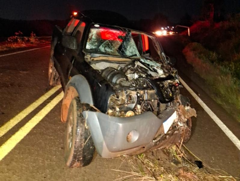 O motorista da caminhonete, de 35 anos, sofreu fratura exposta no joelho e outras lesões pelo corpo.