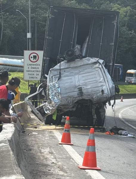 Segundo informações preliminares da Polícia Rodoviária Federal (PRF), o caminhoneiro que iniciou o engavetamento morreu e ao menos 14 pessoas ficaram feridas.