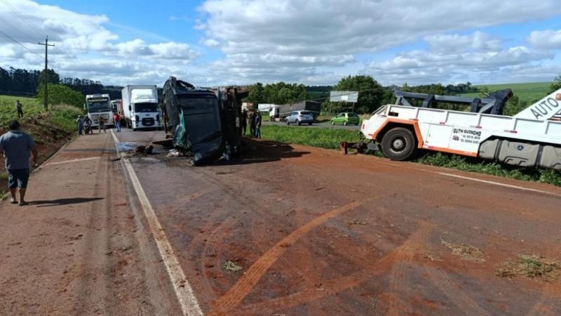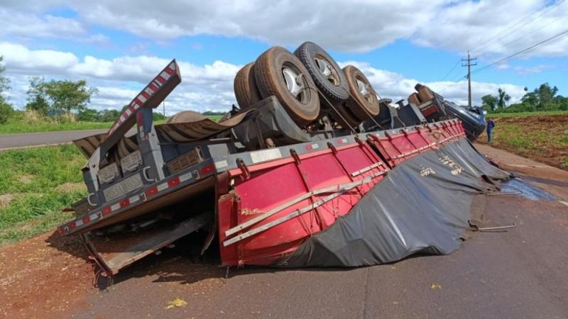 A carreta, que estava vazia no momento do acidente, ficou atravessada sobre a pista no sentido a Cascavel, bloqueando completamente o tráfego.