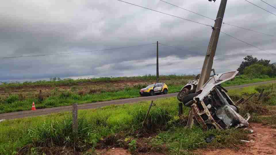 O carro saiu da pista e bateu violentamente contra um poste de energia elétrica às margens da via, causando danos de grande monta tanto no veículo quanto na estrutura do poste.