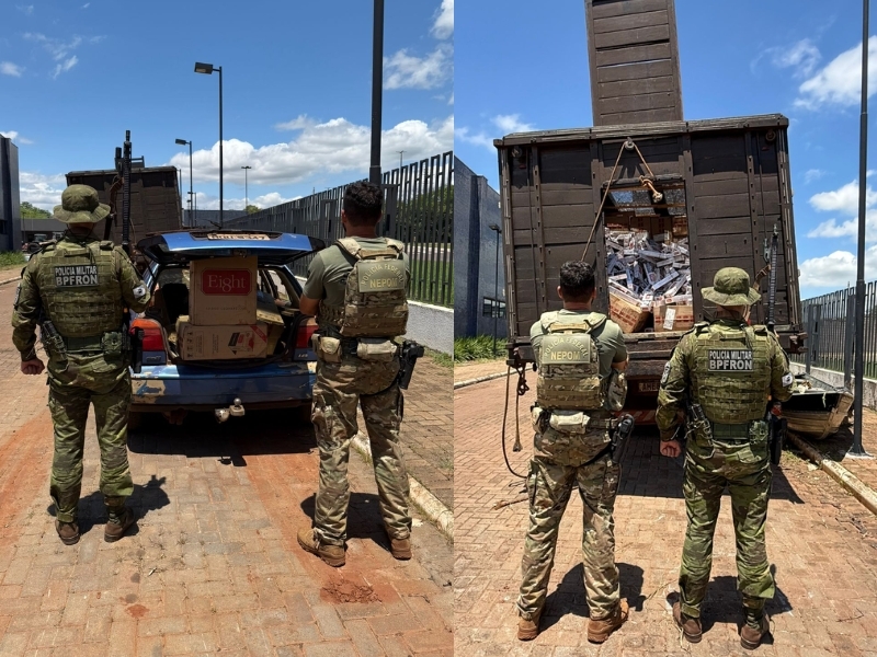 Durante a inspeção no local, foi constatado que aproximadamente 11.210 pacotes de cigarros de origem paraguaia estavam carregados em um caminhão boiadeiro e um veículo, caracterizando contrabando. O prejuízo estimado ao crime organizado é de R$ 610 mil, segundo as autoridades.