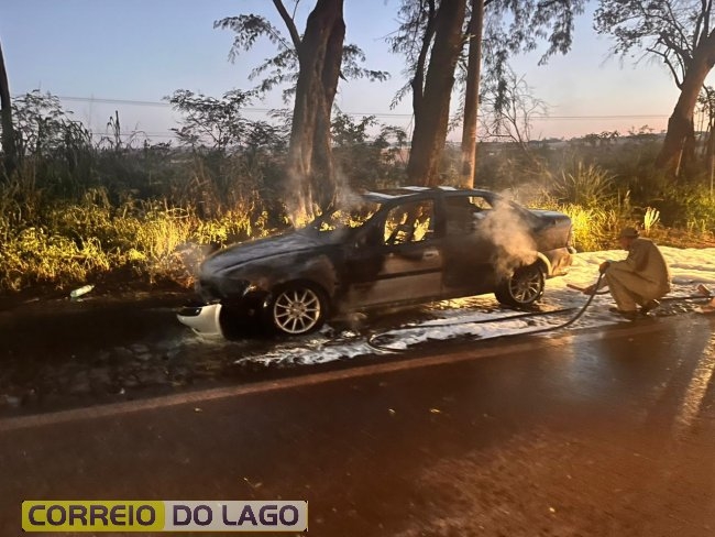O condutor conseguiu parar no acostamento da rodovia, mas logo em seguida as chamas passaram a ser percebidas, tomando rapidamente o carro.