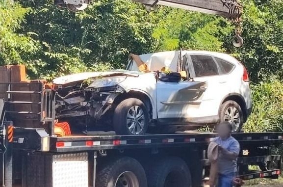 O carro acabou capotando e caiu em um barranco, ficando completamente destruído. Os maiores danos foram principalmente no teto sobre o motorista, que foi todo esmagado.
