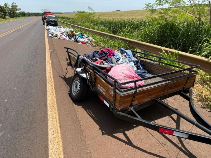 A PRF também esteve presente, controlando o trânsito e registrou a ocorrência. A carga de roupas que o reboque do Corrola transportava ficou espalhada às margens da BR-163.