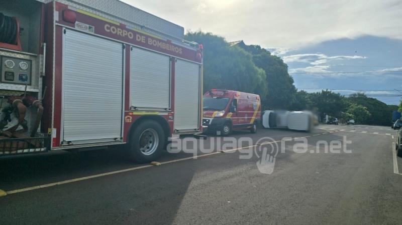 De acordo com informações, o Fiorino seguia pela Rua Espírito Santo em direção ao centro da cidade. O Palio estava na Rua Colombo, vindo da Avenida Rio Grande do Sul, quando houve a colisão. Com o impacto, o pneu do Fiorino bateu no ‘tachão’ no meio da pista e acabou capotando.