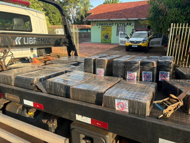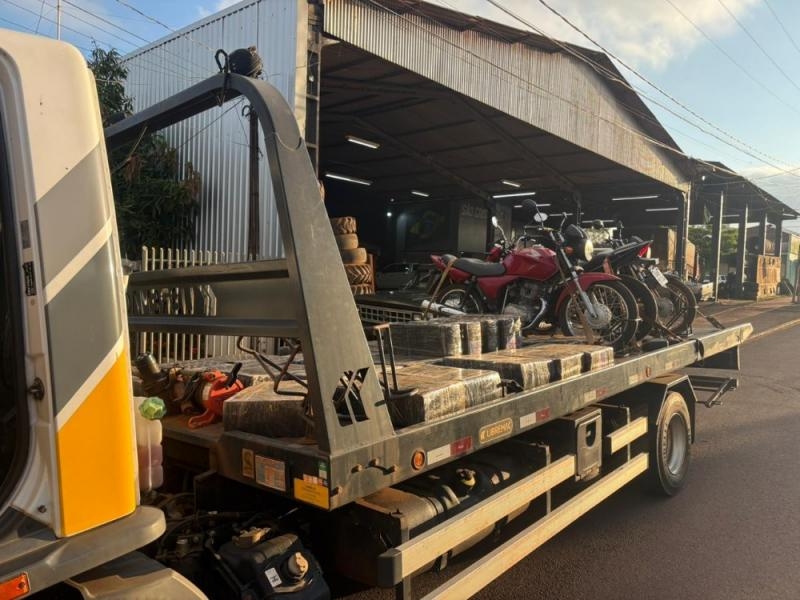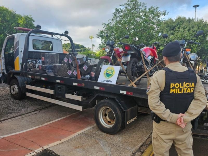 Ao todo, foram recuperadas três motos – todas furtadas em Toledo nos últimos dias – e apreendidos 557 kg de maconha e uma arma de fogo, com munições, além de um drone, celulares e um binóculos.