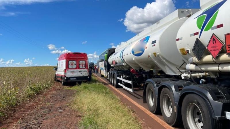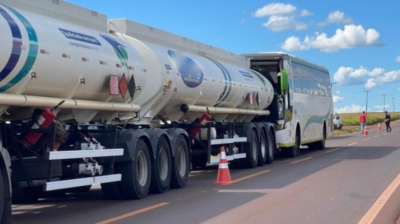 De acordo com as informações, o ônibus acabou colidindo na traseira do caminhão-tanque. No momento do acidente, havia trabalhadores no interior do coletivo, o que mobilizou equipes de atendimento.