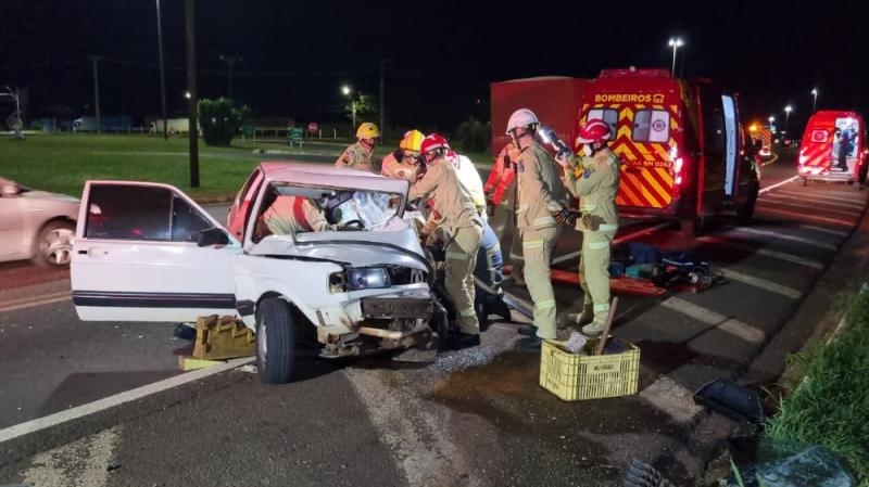 No Voyage, o condutor, um jovem de 21 anos, ficou preso nas ferragens e precisou ser retirado com auxílio do Corpo de Bombeiros.