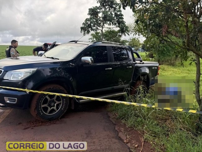 Ele foi encontrado caído em uma estrada rural, ao lado de uma caminhonete GM/S-10 de cor escura.