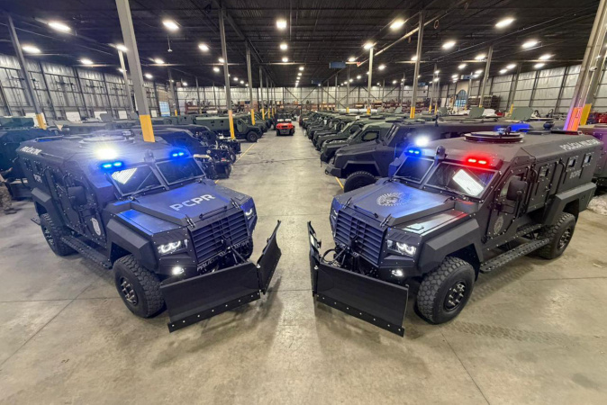 Os sete veículos são da fabricante canadense Roshel INC, fornecedora de agências internacionais de segurança. Entre elas estão a Homeland Security, a U.S. Customs and Border Protection e a NASA, além do Departamento de Defesa do Canadá e da Peel Regional Police, de Toronto.
