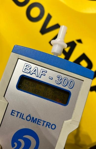 O condutor foi abordado e submetido ao teste do etilômetro, que apontou resultado de 0,75 mg/L, configurando crime de trânsito. Diante da situação, ele recebeu voz de prisão.