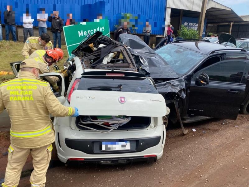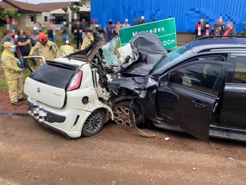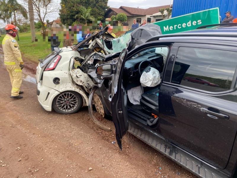 Um grave acidente de trânsito foi registrado na manhã deste sábado (6), as 10h45, na BR-163, no trecho que passa pela cidade de Mercedes. A colisão envolveu um automóvel Fiat Punto, de Assis Chateaubriand, e uma caminhonete Ford Ranger preta, de Toledo.