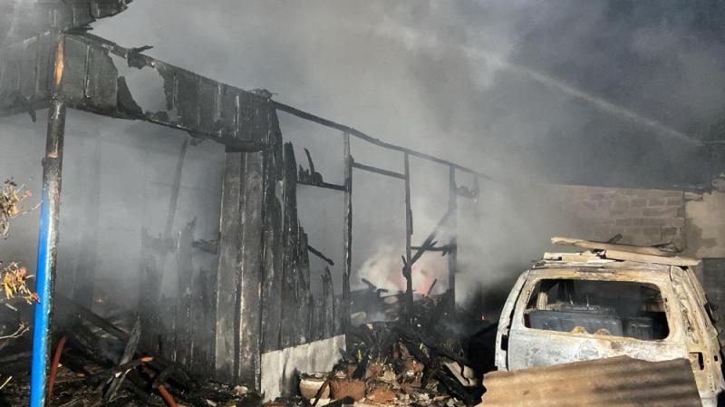 Mesmo com o esforço das equipes, a residência, construída parte em alvenaria e parte em madeira, foi completamente destruída. Um Chevrolet Meriva que estava na garagem também foi consumido pelo fogo.
