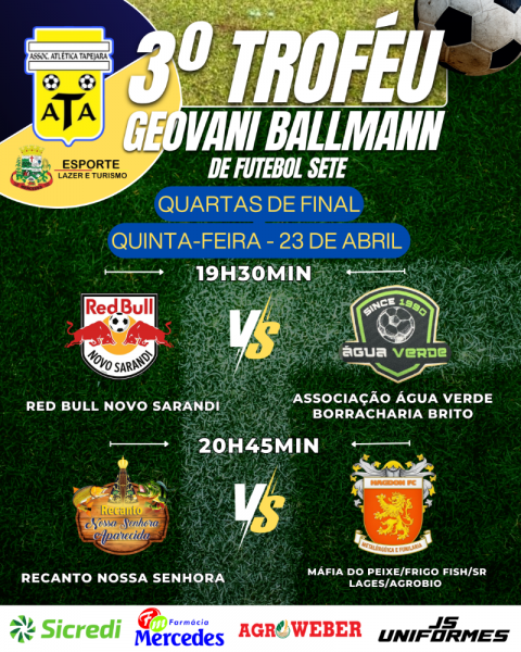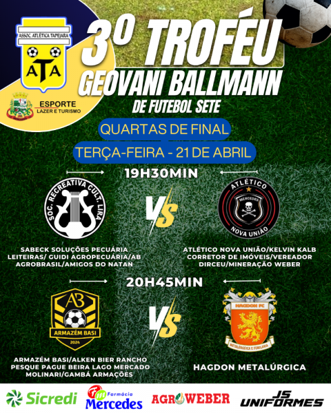 Esta semana será de decisão no 3º Troféu Geovani Ballmann de Futebol Sete, com os jogos das quartas de final. As partidas acontecem na Associação Tapejara, em Mercedes.