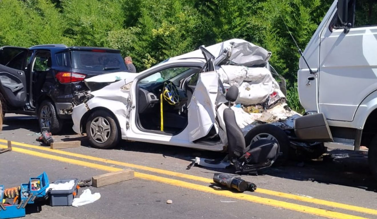 Um engavetamento envolvendo três carros e um caminhão na BR-376, em União da Vitória, resultou na morte de uma jovem de 27 anos. Mikael Silva Mattos estava em um Chevrolet Prisma com o pai e a madrasta, que tiveram ferimentos graves.