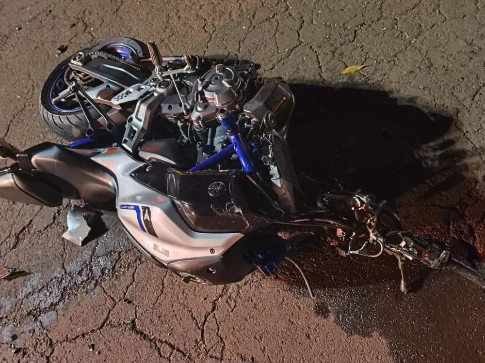 Conforme as informações, o acidente envolveu uma motocicleta Yamaha MT-07 ABS, de cor prata, e um automóvel Renault Sandero Stepway 1.6, de cor branca. Com o forte impacto, a moto teve a roda dianteira arrancada e o carro grande danos.