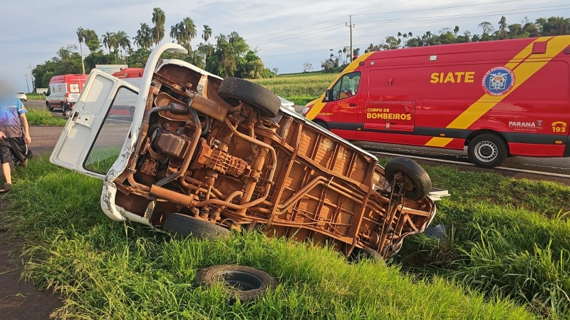 Com o impacto, a Kombi perdeu a estabilidade e tombou na pista, parando no canteiro central. O veículo transportava quatro ocupantes: três homens adultos e uma criança de 11 anos. O menino e um dos homens sofreram ferimentos leves, enquanto os outros dois adultos apresentaram lesões moderadas, incluíndo fraturas. Um deles ficou preso às ferragens.