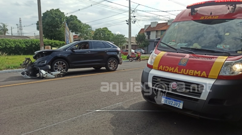 A violenta colisão aconteceu no cruzamento das ruas Independência e Rio Grande do Norte e envolveu um veículo Ford Edge e uma motocicleta.