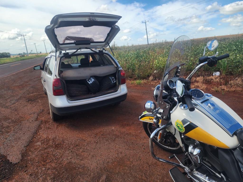O condutor, morador de Assis Chateaubriand, transportava 18 pneus sem o devido desembaraço aduaneiro.