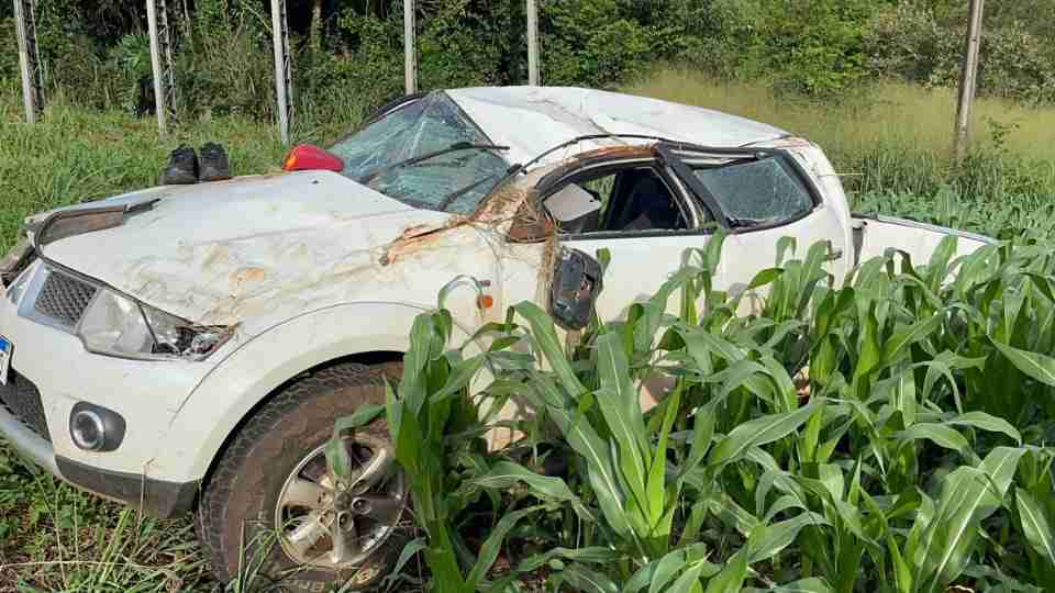 Durante o trajeto, perdeu o controle da direção e capotou. O veículo foi parar distante da rodovia, próximo de uma plantação.