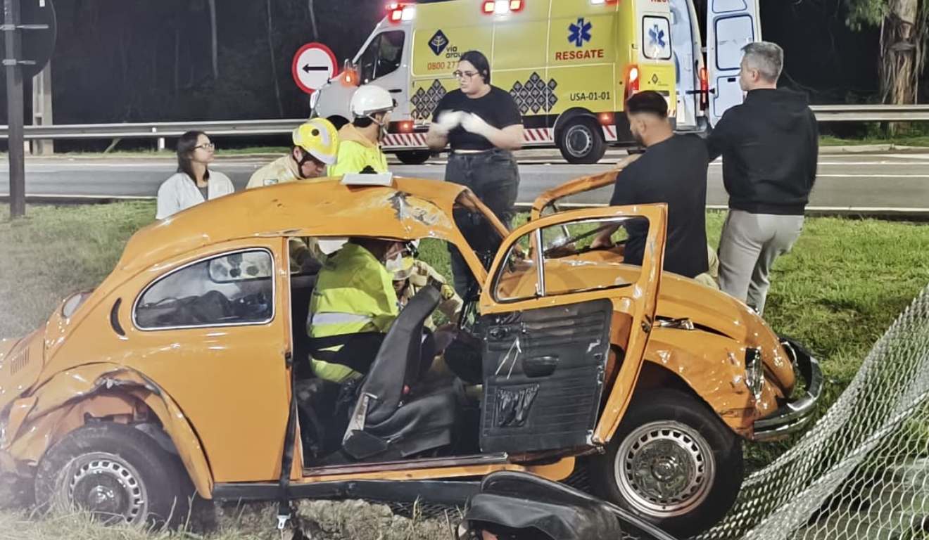 O passageiro, lançado para fora do veículo, foi encontrado já no lado de fora quando as equipes chegaram. O motorista, por sua vez, estava preso no interior do Fusca, no banco traseiro, e precisou de auxílio para ser retirado.