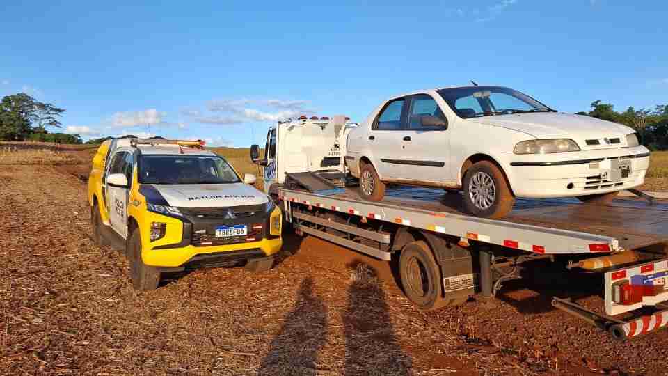 O condutor desobedeceu à ordem de parada e fugiu em alta velocidade, entrando em uma estrada rural.