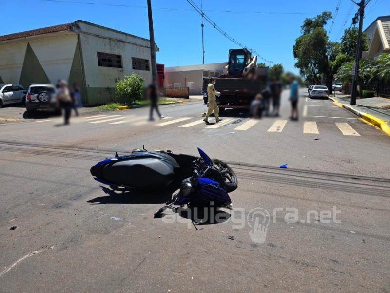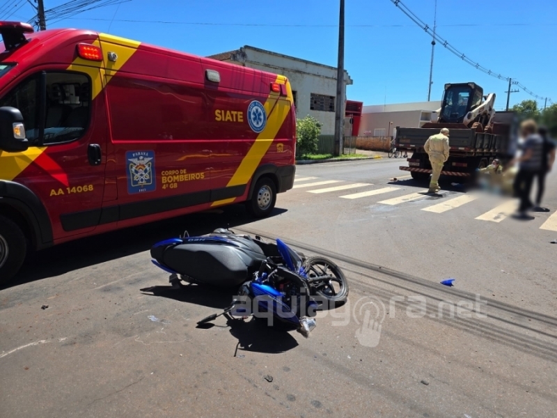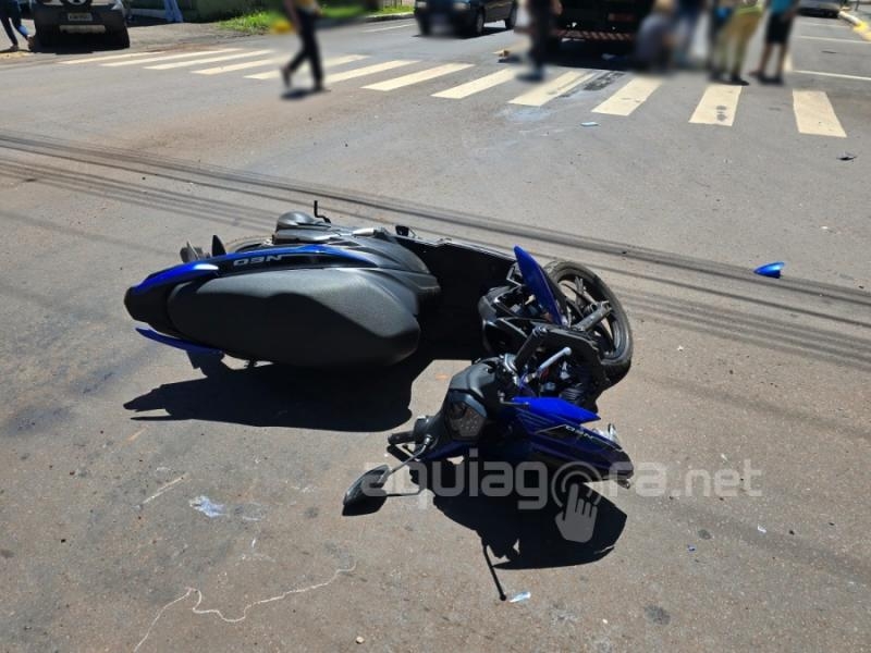 A colisão envolveu uma motocicleta Yamaha Neo e um caminhão, e aconteceu no cruzamento das ruas Pernambuco e 7 de Setembro. De acordo com informações, o caminhão seguia pela rua Pernambuco e a moto pela 7 de Setembro, quando houve a violenta colisão.