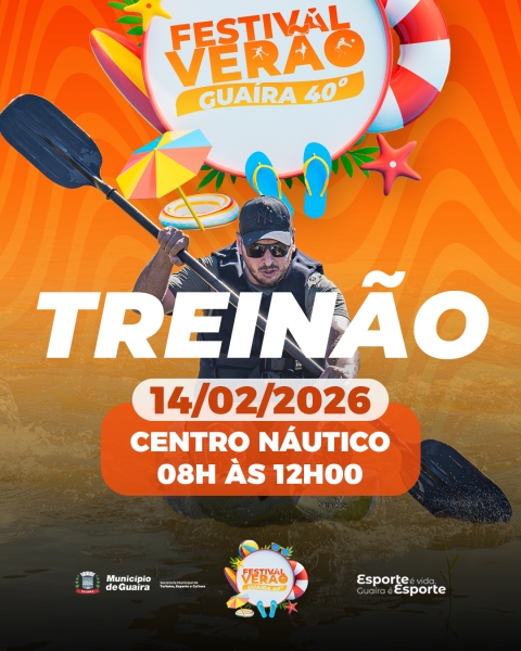 O Município de Guaíra realiza, no próximo sábado, dia 14 de fevereiro, um “treinão” de caiaque no Lago das Marinas. A atividade ocorre das 8h às 12h e integra o calendário esportivo municipal, com foco na promoção da saúde, do lazer e da valorização dos espaços naturais da cidade.