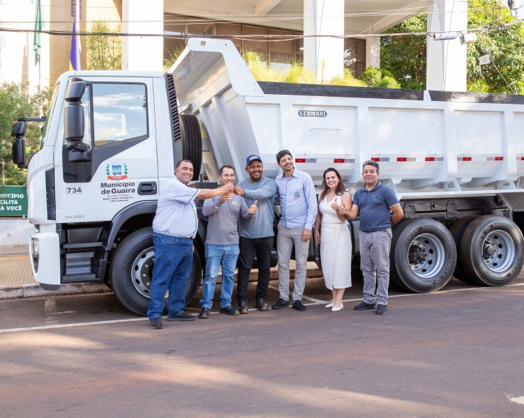 O Município de Guaíra realizou, na manhã desta sexta-feira, em frente ao Paço Municipal, a entrega oficial de um caminhão caçamba destinado à Secretaria de Agropecuária, Infraestrutura e Meio Ambiente. O novo veículo irá fortalecer os trabalhos realizados pelas equipes municipais e ampliar a capacidade de atendimento às demandas da população.