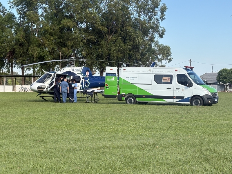 Devido ao seu quadro clínico, o SAMU foi acionado e encaminhou a equipe aeromédica para a transferência para um hospital de Toledo.