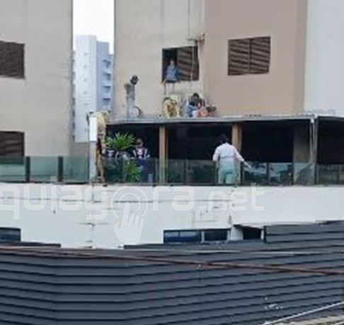 Com o auxílio de outro trabalhador, o homem mesmo ferido, conseguiu baixar a corda e desce até piso do andar social do prédio.