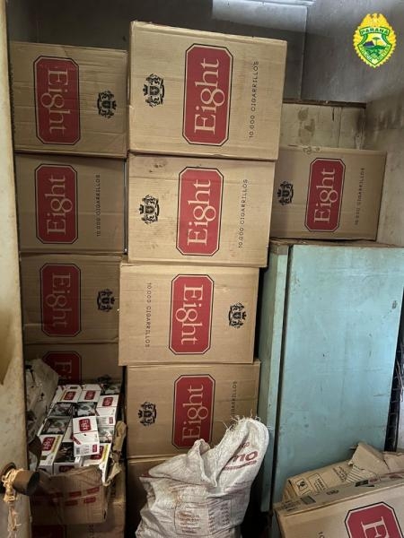 Entre os materiais apreendidos estão uma pistola calibre 9 mm, uma espingarda calibre .22 LR semiautomática, uma espingarda calibre 36, diversas munições, 20 caixas de cigarros de origem estrangeira, totalizando mil pacotes, além de rádios comunicadores e aparelhos celulares.