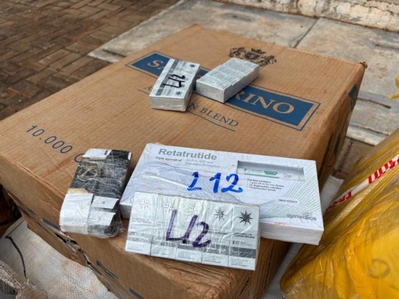 Em continuidade às buscas na região, outras duas motocicletas foram localizadas, também carregadas com produtos ilícitos. Ao todo, foram apreendidas três motocicletas, uma caixa de cigarros paraguaios, cerca de 350 quilos de agrotóxicos — entre herbicidas e inseticidas — além de um volume contendo substâncias anabolizantes e canetas emagrecedoras.