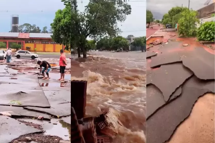 O asfalto saiu da rua Pedro Segura Alda, que fica na região central da cidade. Nos trechos que não ficaram completamente em terra, restaram pedaços da estrutura.