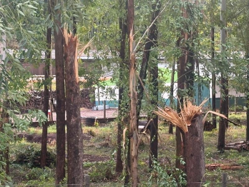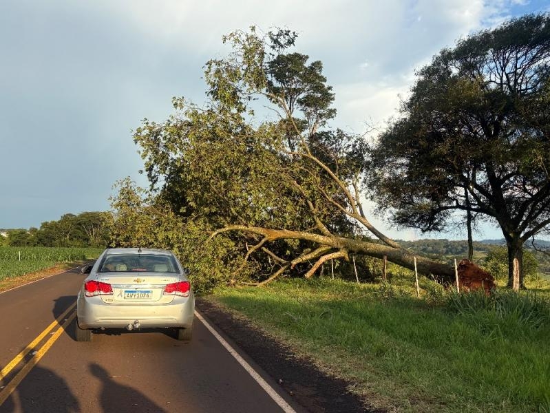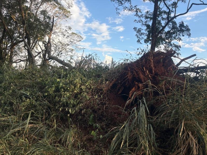 A chuva, acompanhada de fortes rajadas de vento, derrubou várias árvores. Algumas caíram sobre as estradas que ligam Mercedes à Três Irmãs e também ao Arroio Guaçu.