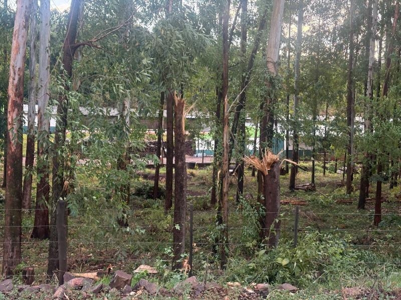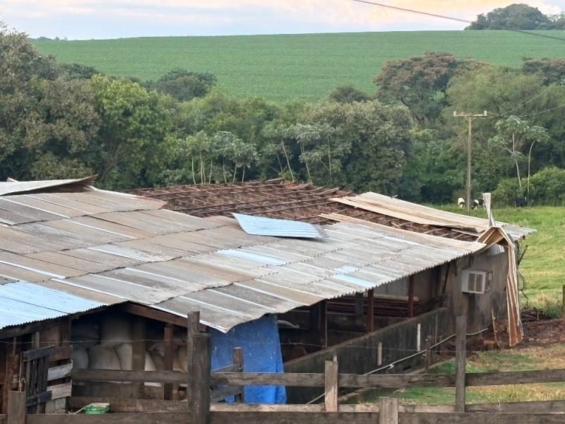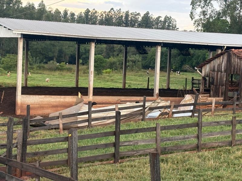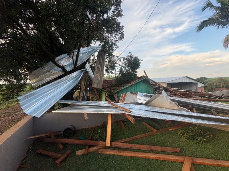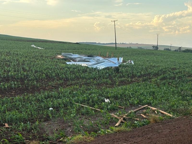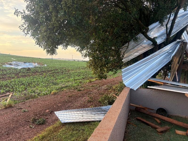 Em outra propriedade rural na Sanga XV, vários estragos foram registrados. O telhado da residência foi completamente arrancado, com telhas parando a cerca de 100 metros do imóvel.