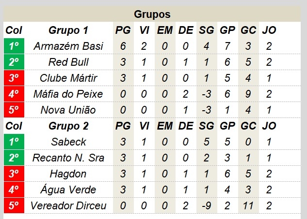 Os jogos dão continuidade à disputa do campeonato, que reúne 10 equipes de municípios da região. Na fase inicial, os times estão divididos em dois grupos, e os quatro melhores colocados de cada chave avançam para o mata-mata. A classificação atual é a seguinte: