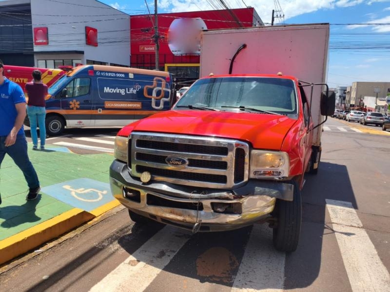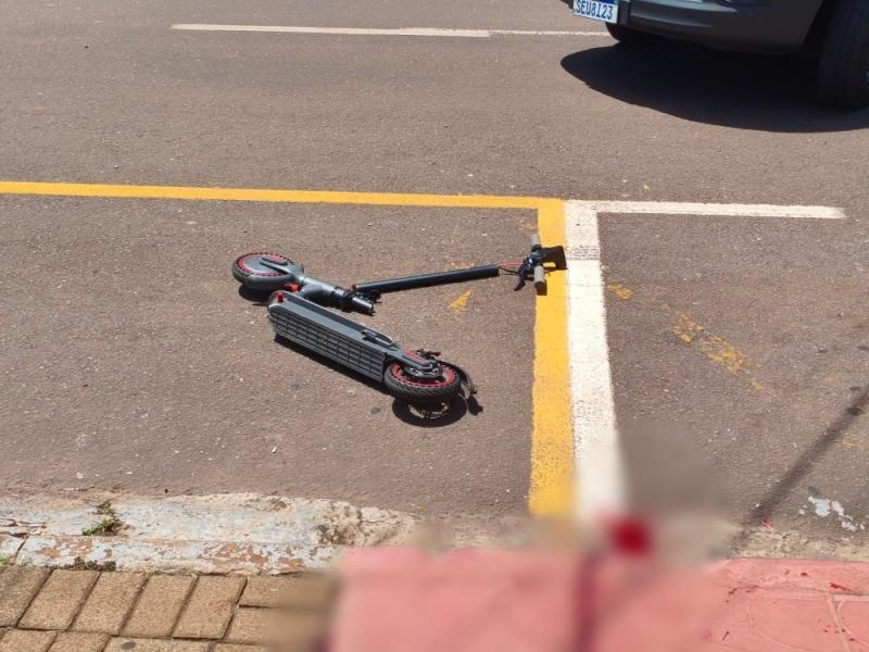 Um grave acidente foi registrado por volta das 11h40 desta sexta-feira (24), no cruzamento das ruas Piratini e Rui Barbosa, na região central de Toledo. A colisão envolveu uma viatura da Polícia Militar (PM), um patinete elétrico e um furgão Ford F-4000.