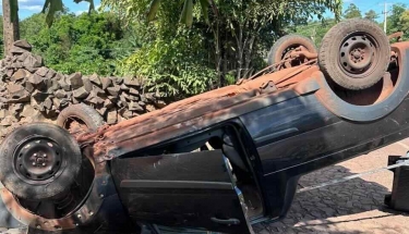 Carro capota em trecho em obras em Alto Santa Fé, Nova Santa Rosa