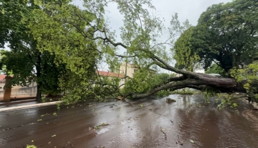Vento e chuva fortes atingem Guaíra e derrubam árvores