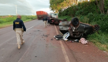 Carro com oito pessoas capota na BR-163 entre Marechal Rondon e Toledo