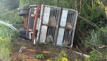 Carreta com carga de porcos tomba na Serrinha da BR-163, entre Mercedes e Guaíra