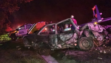 Carro pega fogo após colisão com viatura da PM em Cascavel