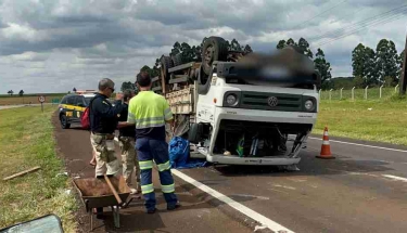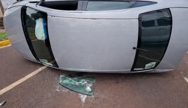 Condutor perde o controle e veículo tomba após colisão em avenida de Toledo